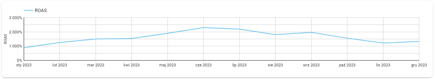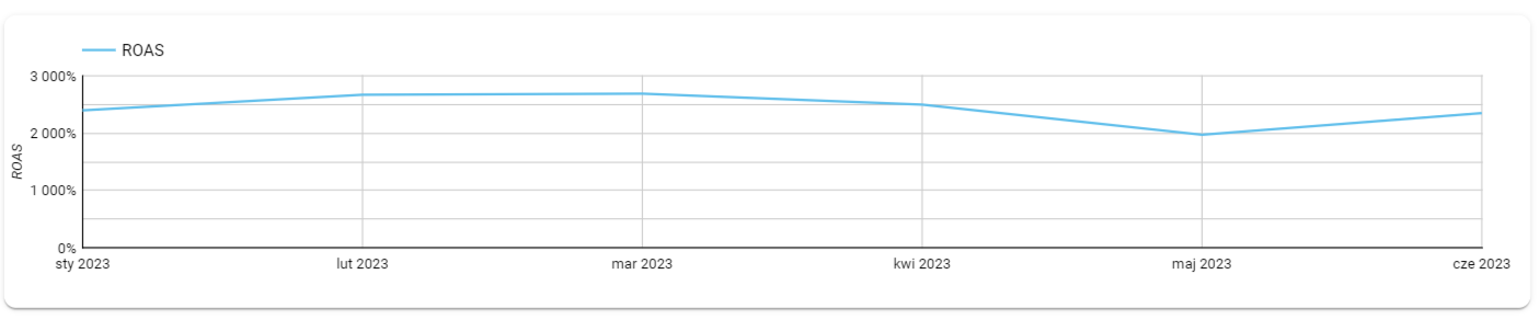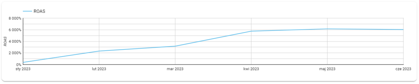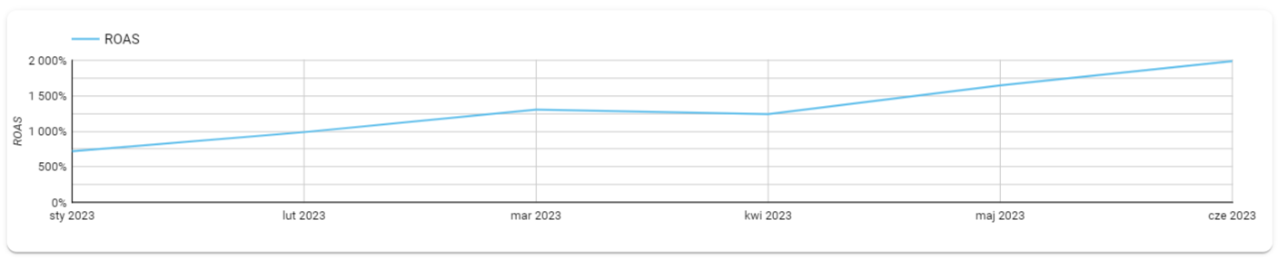 Prowadząc regularną optymalizację kampani, zachowaliśmy stałą wartość ROAS w okolicach 2000%, zwiększając znacznie wartość generowanego przychodu.
