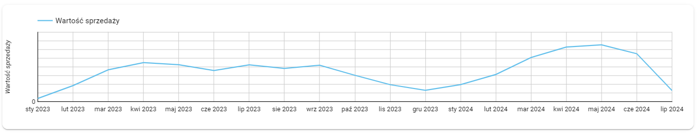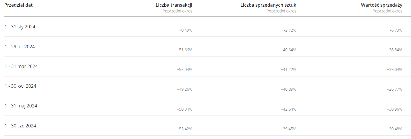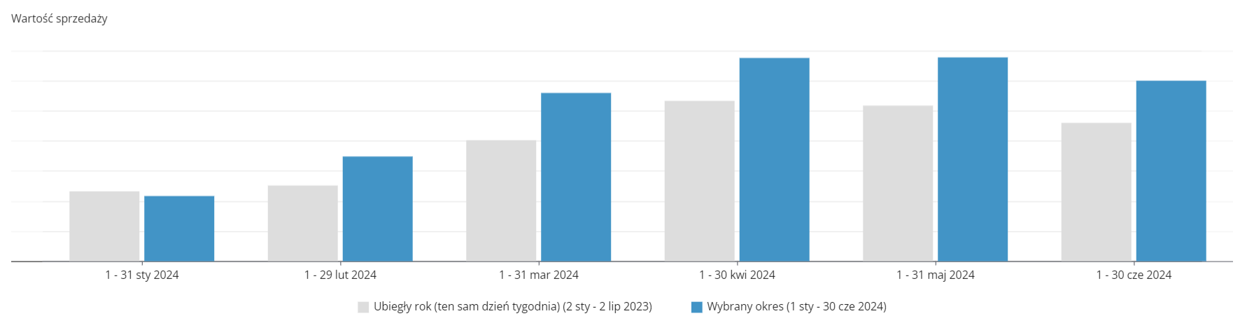 Wartość sprzedaży dla miesięcy w 2024 wzrosła średnio o ok. 30%.