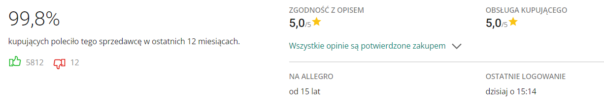 Konto e-lakiernik istnieje na Allegro od 15 lat. Audyt konta Allegro nie wykazał, żadnych większych uwag i potwierdził, że wszystkie aspekty jego działalności są zarządzane zgodnie z najlepszymi praktykami, co potwierdza wysoką jakość i efektywność prowadzonego konta.
