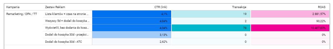 Warto też wspomnieć, że najlepiej konwertującym zestawem reklam w remarketingu okazał się ten skierowany do osób, które jedynie wyświetliły produkty, ale nie dodały ich do koszyka, co tylko dowodzi, że czasem warto postawić na testowanie niestandardowych rozwiązań:
