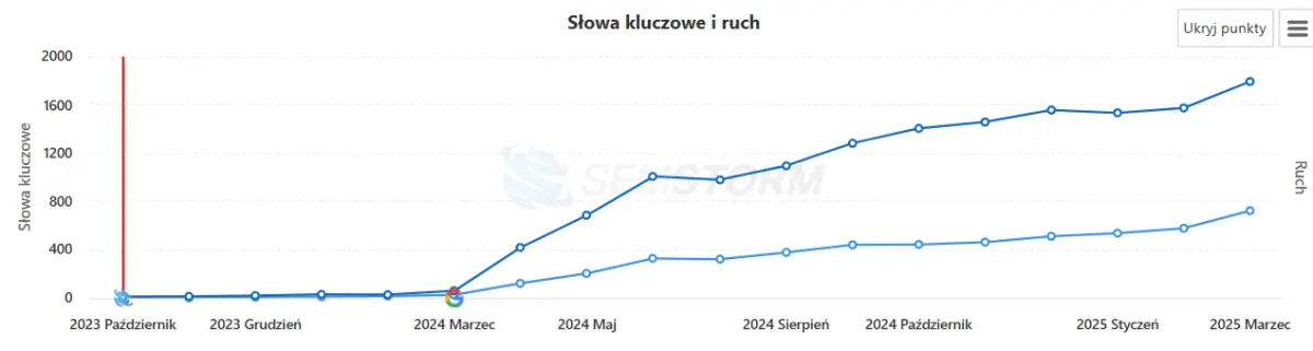 Widoczność w wyszukiwarce systematycznie rośnie, co bezpośrednio przekłada się na zwiększenie ruchu organicznego i napływ nowych użytkowników:
