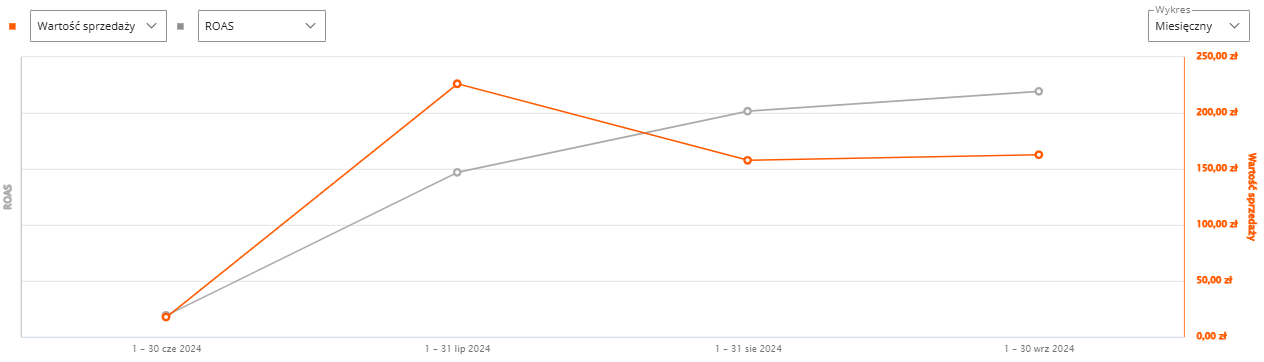 wyniki oferty w kampanii ofert sponsorowanych - sprzedaż i ROAS (czerwiec-wrzesień)