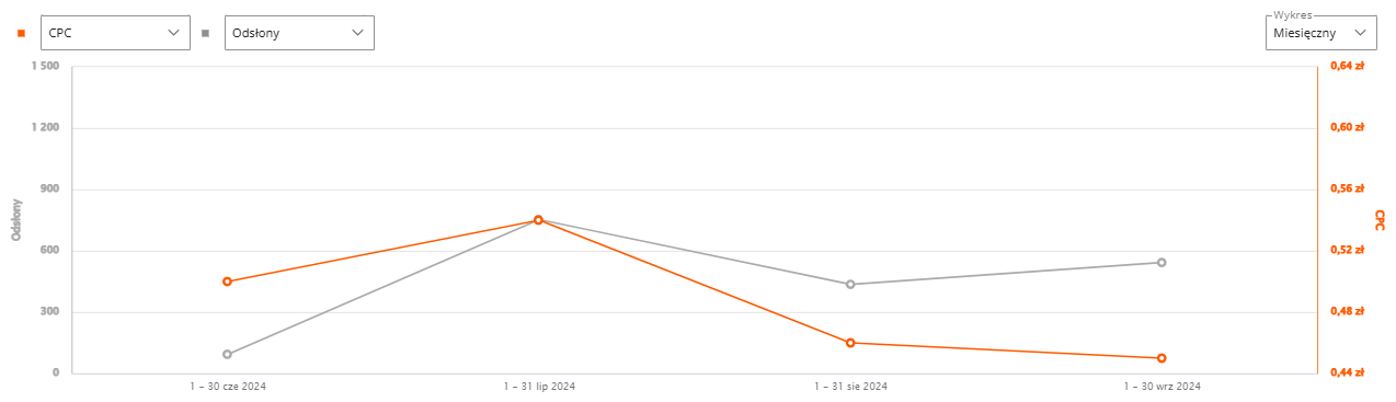 wyniki oferty w kampanii ofert sponsorowanych - odsłony i CPC (czerwiec-wrzesień)