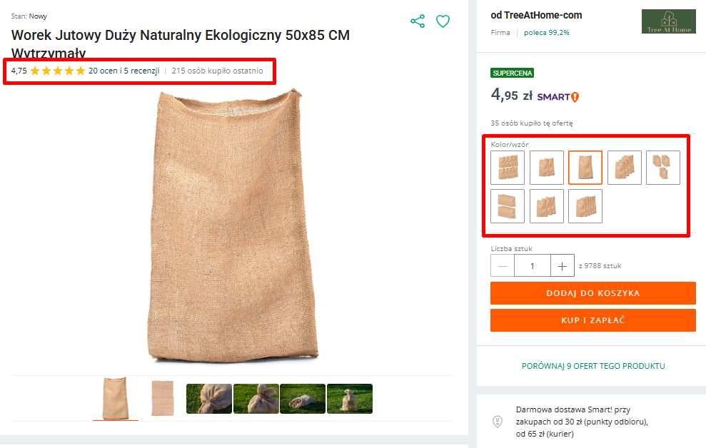 Po pierwsze: dla produktu przygotowanych zostało 7 nowych ofert, a każda kolejna zawierała większą liczbę sztuk produktu z odpowiednio dostosowaną ceną. Po drugie, dla każdej z nich przygotowane zostały nowe miniaturki dostosowane do liczby sztuk w zestawie. Po trzecie, wszystkie oferty zostały połączone w warianty.