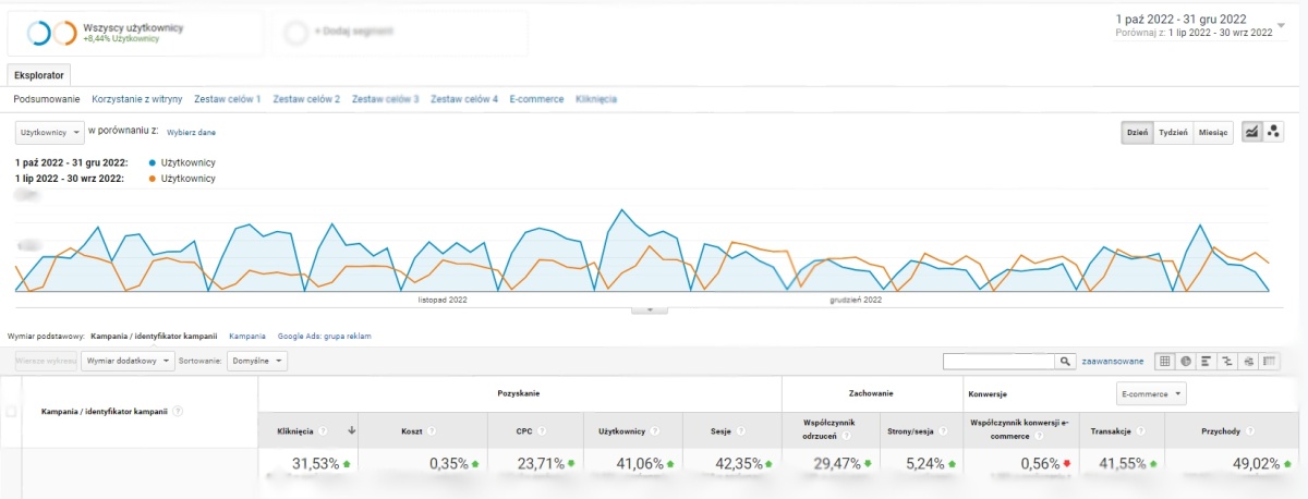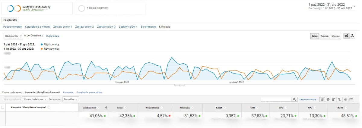 Jak widać, staranna praca nad strukturą i optymalizacją kampanii pozwala podnieść jej efektywność nawet przy ograniczeniu wydatków!