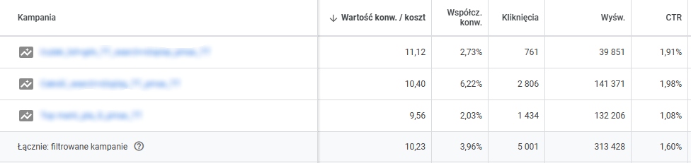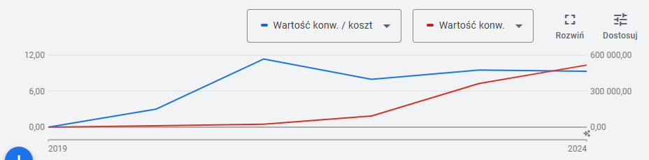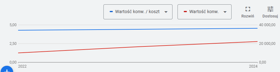 Wyniki kampanii Google Ads na przestrzeni czasu