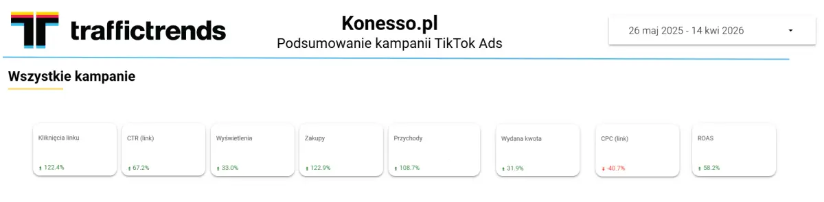 Sukces Konesso.pl pokazuje, że Twoje treści organiczne mogą stać się Twoją najskuteczniejszą reklamą. W Traffic Trends wiemy, jak połączyć pasję Twojego zespołu z zaawansowaną technologią kampanii TikTok Ads, aby nie tylko budować społeczność, ale przede wszystkim realnie zwiększać zyski. Skontaktuj się z nami i sprawdźmy, jak możemy powtórzyć ten sukces z Twoją marką!