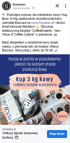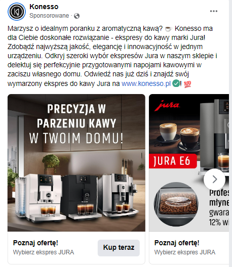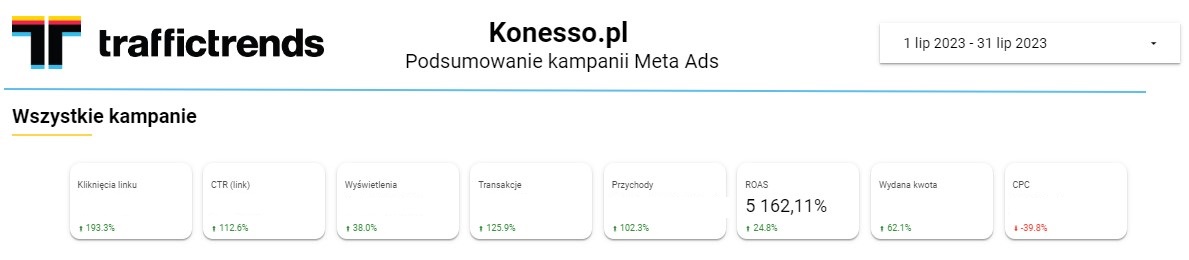 miała pozytywny wpływ na wyniki sprzedażowe kampanii reklamowych Meta prowadzonych dla sklepu Konesso. Aby dostosować strategię do reakcji odbiorców oraz zmieniających się warunków rynkowych, kluczowe jest jednak stałe monitorowanie, analizowanie danych i ciągła optymalizacja, mająca za zadanie maksymalizację efektów.