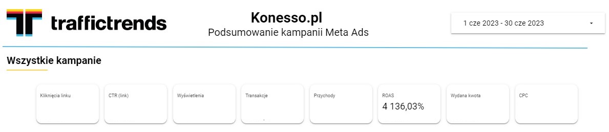 W dzisiejszym zmiennym i konkurencyjnym środowisku marketingowym, zyskanie przewagi konkurencyjnej oraz utrzymanie stałego wzrostu sprzedaży stanowią kluczowe wyzwania dla każdej firmy. Kampanie reklamowe odgrywają kluczową rolę w budowaniu wizerunku marki oraz pozyskiwaniu lojalnych klientów. Czy pomimo wielu wyzwań istnieje szansa na skuteczne zwiększenie sprzedaży w sklepie internetowym poprzez kampanie reklamowe Meta? Efekty naszej pracy mówią same za siebie: podwojenie liczby transakcji i przychodów oraz osiągnięcie rentowności na poziomie 5200% i to już w drugim miesiącu prowadzenia działań reklamowych! Wykorzystując potencjał i mocne strony lidera w swoim segmencie - Konesso.pl, oraz wprowadzając innowacyjne rozwiązania reklamowe, pozwalające zmaksymalizować efektywność kampanii reklamowych Meta Ads, można osiągnąć spektakularne wyniki.