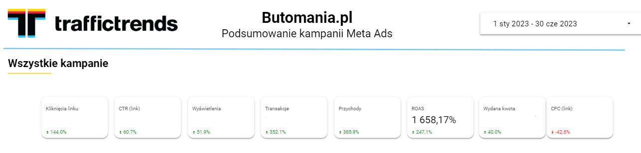 Jako ciekawostkę podajemy Wam także podgląd z raportu klienta, w którym zobaczyć możecie różnice między pierwszym a drugim półroczem prowadzenia działań reklamowych: