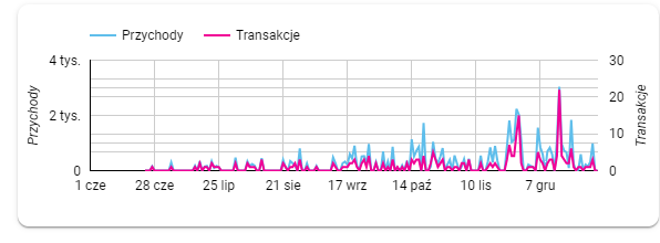 Wykres wzrostu liczby przychodów i transakcji w 2023 roku.