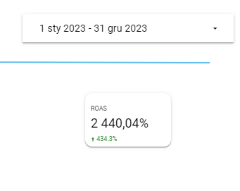 Z czasem przeznaczaliśmy coraz większe środki na coraz bardziej rentowne kampanie. Początkowy budżet ustalony w czerwcu 2022 roku zwiększył się trzykrotnie. Wszystko to przełożyło się na aktualny wynik kampanii - w 2023 roku średni ROAS z kampanii reklamowych wyniósł 2440%.
