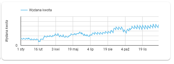 Pierwszy sensowny w naszym mniemaniu skok przychodów odnotowaliśmy dopiero w październiku tego samego roku, jednak już wcześniej widzieliśmy stopniowy spadek kosztów wygenerowania konwersji pośrednich - od wyświetlenia zawartości aż po dodanie informacji o płatności. Kiedy koszt dokonania zakupu zaczął stanowczo spadać, wiedzieliśmy, że to jest ten długo wyczekiwany przez nas moment - algorytmy w końcu “zrozumiały” jakimi zachowaniami cechują się odbiorcy, którzy dokonają konwersji. Jednocześnie my wiedzieliśmy już, w jaki sposób zachęcać odbiorców do zakupów w treściach reklam, jakie produkty im pokazywać oraz jakie grupy są tymi, w których algorytmy są w stanie znaleźć zainteresowane asortymentem osoby.