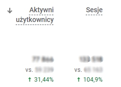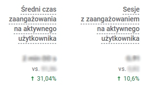 Dodatkowo wytworzyliśmy zaangażowanie użytkowników! Na screenie poniżej prezentujemy wzrost średniego czasu zaangażowania na aktywnego użytkownika oraz liczby sesji z zaangażowaniem na aktywnego użytkownika (dane z lipca 2024).