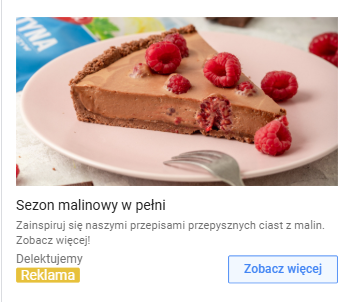 Dodatkowo kampanie były wzbogacane o reklamy związane z sezonowymi produktami - promowaliśmy przepisy na bazie owoców dostępnych w danym czasie. Przykładem mogą być reklamy poświęcone przepisom z jabłkami, malinami czy truskawkami. Każdy z tych elementów był starannie planowany we współpracy z Klientem oraz poprzedzony analizą w planerze słów kluczowych. Dzięki temu mogliśmy odpowiednio wcześniej wdrożyć nowe reklamy tematyczne, docierając do użytkowników dokładnie wtedy, gdy zainteresowanie danymi produktami i przepisami było największe.