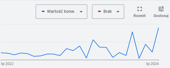 Poniższy wykres przedstawia wartość konwersji w czasie. Widać znaczący wzrost przychodów od momentu wdrożenia optymalizacji, co potwierdza skuteczność naszych działań.